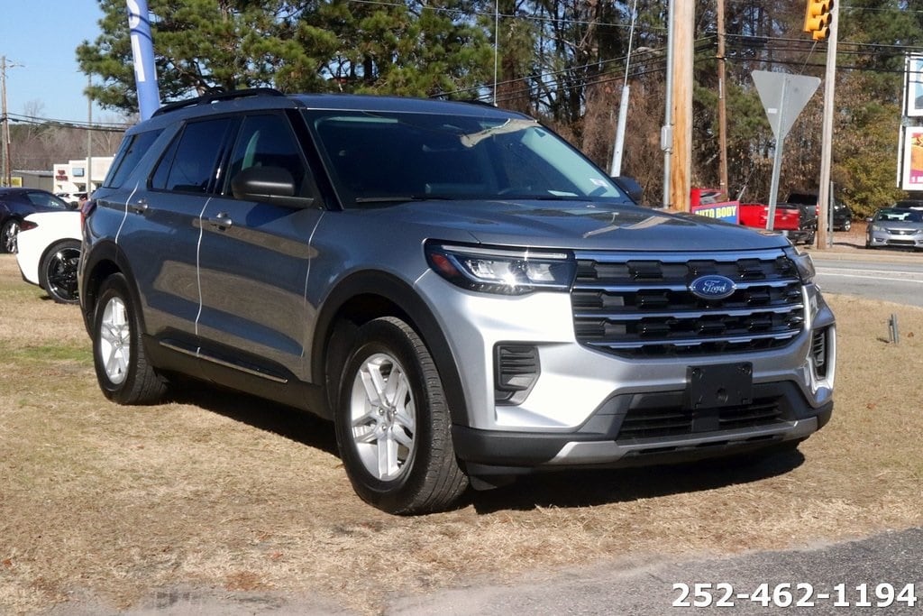 Equipped with Equipment Group 200A Standard Package, 3.58 Non-Limited Slip Rear Axle, 3rd row seats: bench, 4-Wheel Disc Brakes, 6 Speakers, ABS brakes, Air Conditioning, Alloy wheels, AM/FM radio: SiriusXM with 360L, AM/FM Stereo, Apple CarPlay/Android Auto, Auto High-beam Headlights, Automatic temperature control, Brake assist, Bumpers: body-color, Compass, Delay-off headlights, Driver door bin, Driver vanity mirror, Dual front impact airbags, Dual front side impact airbags, Electronic Stability Control, Emergency communication system: 911 Assist, Exterior Parking Camera Rear, Four wheel independent suspension, Front anti-roll bar, Front Bucket Seats, Front Center Armrest, Front dual zone A/C, Front License Plate Bracket, Front reading lights, Fully automatic headlights, Heated door mirrors, Heated front seats, Illuminated entry, Internet access capable: FordPass Connect 5G, Knee airbag, Leather steering wheel, Low tire pressure warning, Navigation System, Occupant sensing airbag, Outside temperature display, Overhead airbag, Overhead console, Panic alarm, Passenger door bin, Passenger vanity mirror, Power door mirrors, Power driver seat, Power Liftgate, Power passenger seat, Power steering, Power windows, Rear air conditioning, Rear anti-roll bar, Rear reading lights, Rear window defroster, Rear window wiper, Remote keyless entry, Security system, Speed control, Speed-sensing steering, Speed-Sensitive Wipers, Split folding rear seat, Spoiler, Steering wheel mounted audio controls, Tachometer, Telescoping steering wheel, Tilt steering wheel, Traction control, Trip computer, Unique Heated Cloth Captain's Chairs, Variably intermittent wipers, and Wheels: 18" Sparkle Silver-Painted Aluminum