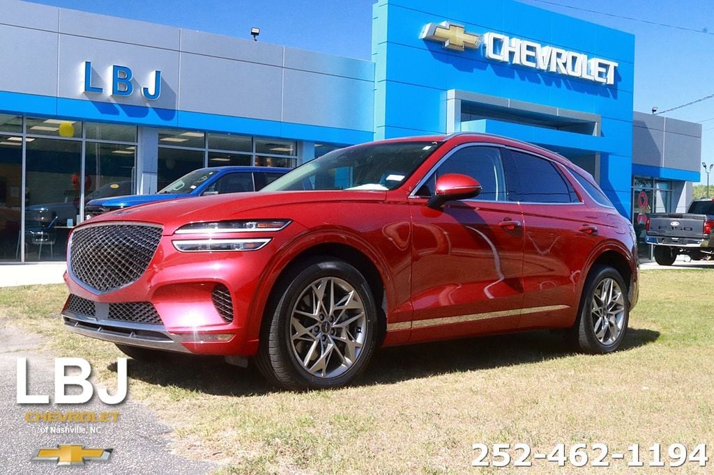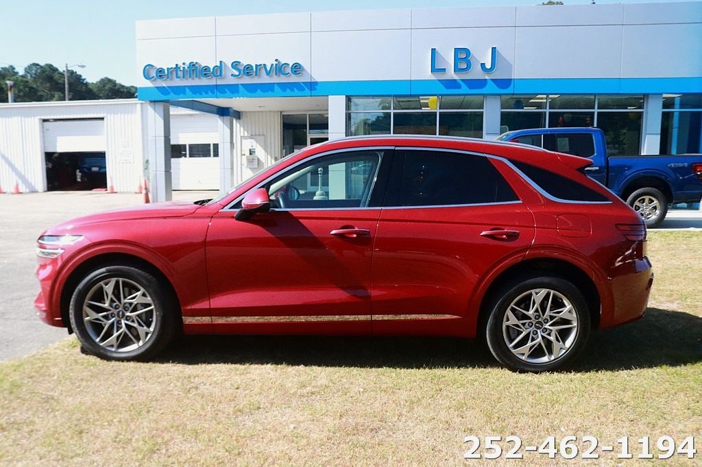 Equipped with Option Group 01, 4-Wheel Disc Brakes, 9 Speakers, ABS brakes, Air Conditioning, Alloy wheels, AM/FM radio: SiriusXM, Android Auto & Apple CarPlay, Anti-whiplash front head restraints, Auto High-beam Headlights, Auto-dimming Rear-View mirror, Automatic temperature control, Brake assist, Bumpers: body-color, Delay-off headlights, Driver door bin, Driver vanity mirror, Dual front impact airbags, Dual front side impact airbags, Electronic Stability Control, Emergency communication system: Genesis Connected Services, Exterior Parking Camera Rear, Four wheel independent suspension, Front anti-roll bar, Front Bucket Seats, Front Center Armrest w/Storage, Front dual zone A/C, Front reading lights, Fully automatic headlights, Garage door transmitter: HomeLink, Heated door mirrors, Heated Front Bucket Seats, Heated front seats, Illuminated entry, Knee airbag, Leather steering wheel, Leatherette Seating Surfaces, Low tire pressure warning, Navigation System, Occupant sensing airbag, Outside temperature display, Overhead airbag, Overhead console, Panic alarm, Passenger door bin, Passenger vanity mirror, Power door mirrors, Power driver seat, Power Liftgate, Power passenger seat, Power steering, Power windows, Radio: 14.5" Navigation System w/AM/FM/HD Radio, Rain sensing wipers, Rear anti-roll bar, Rear Parking Sensors, Rear reading lights, Rear seat center armrest, Rear window defroster, Rear window wiper, Remote keyless entry, Security system, Speed control, Speed-sensing steering, Speed-Sensitive Wipers, Split folding rear seat, Spoiler, Steering wheel mounted audio controls, Tachometer, Telescoping steering wheel, Traction control, Trip computer, Turn signal indicator mirrors, Variably intermittent wipers, and Wheels: 19" Dark Hyper Silver Alloy